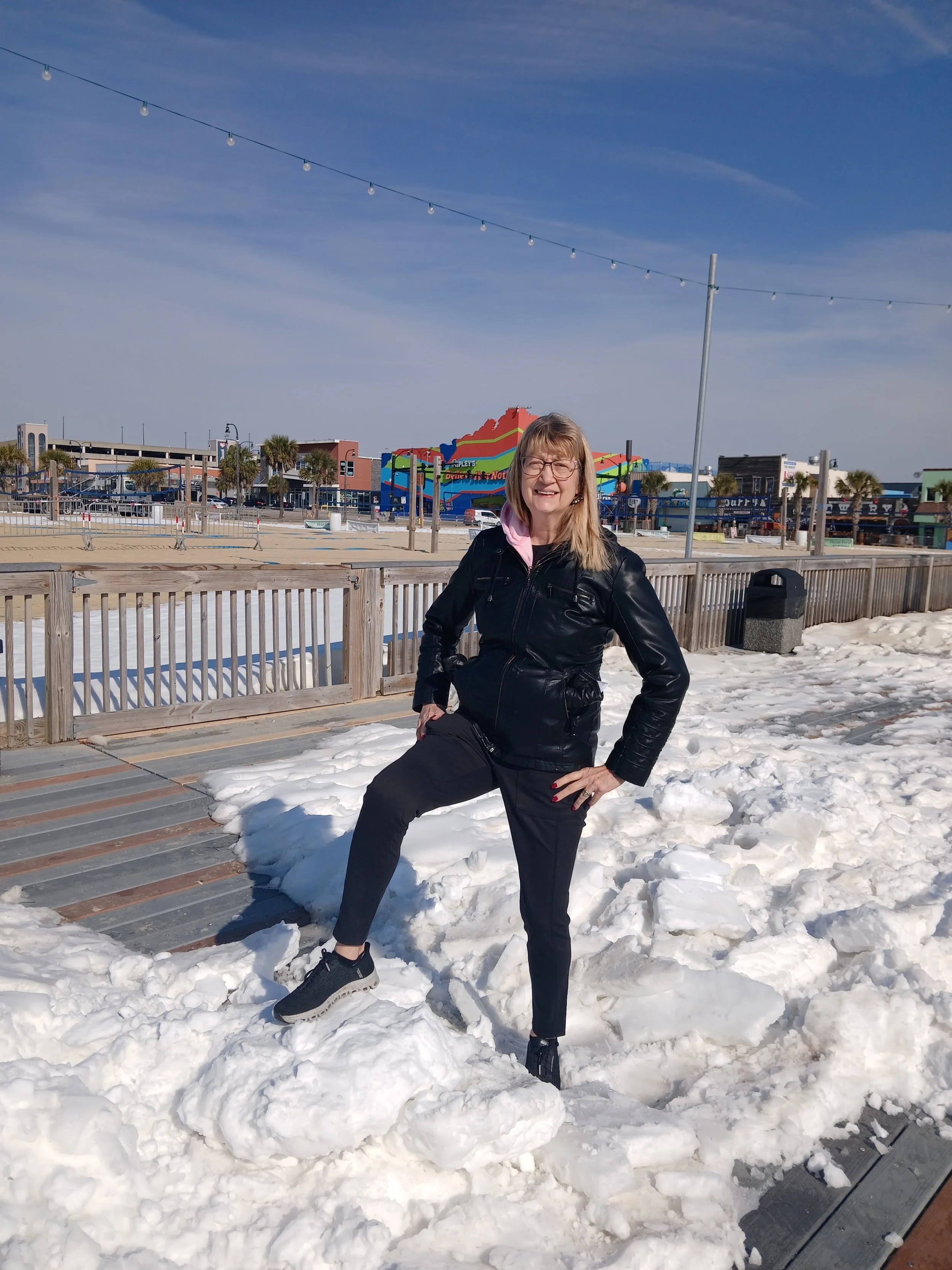 We arrived in Myrtle Beach about 24 hours after a snowstorm. Our home in northwestern South Carolina had about 4 inches of snow from the storm and the snow ended by Saturday afternoon. In Myrtle Beach, which is in the northeastern corner of South Carolina, there was about 5 inches of snow from the storm, and the snow ended late Sunday evening. By the time we arrived in Myrtle Beach the roads were mostly clear but there was still snow on the boardwalk and some of the sidewalks on Ocean Boulevard.